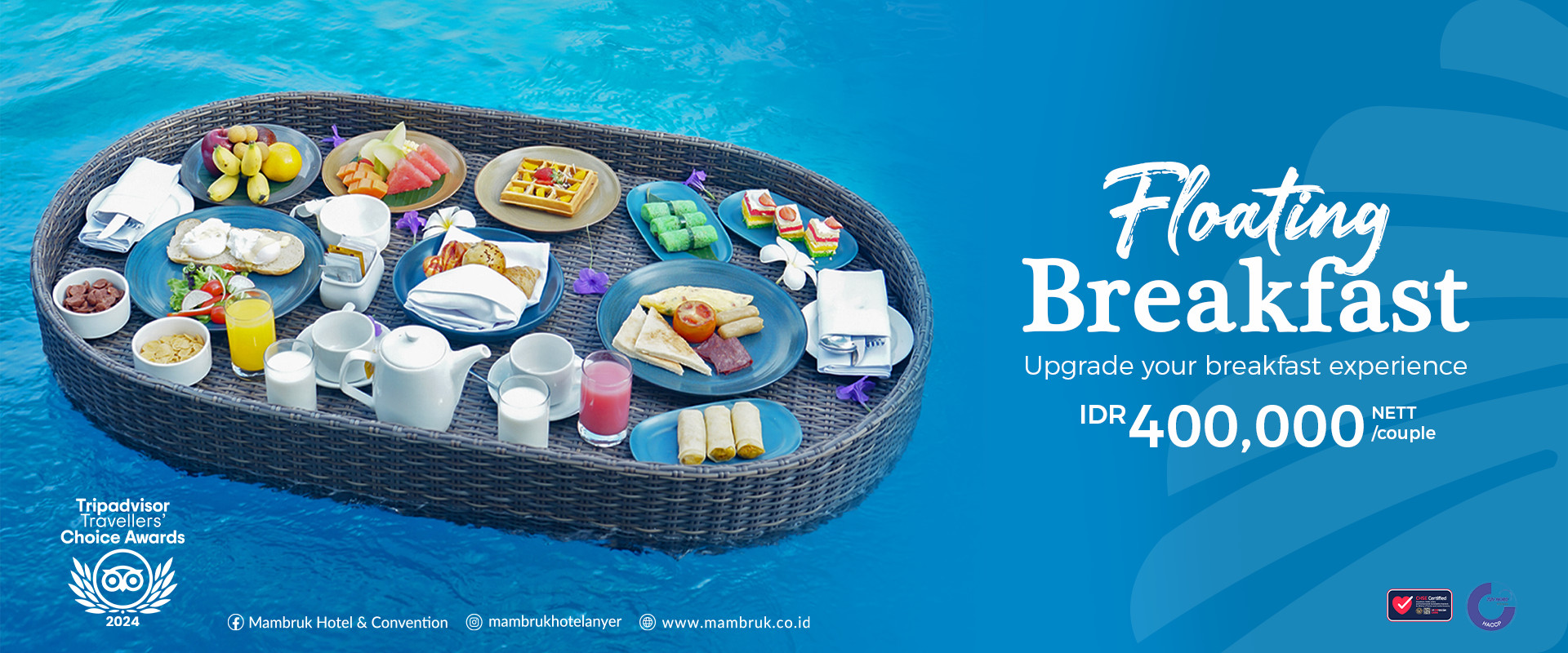 Bored with the ordinary breakfast? Upgrade your breakfast experience with our floating breakfast starting from 400k / couple (2 pax), where you can have your breakfast right from our Infinity Pool, ju...